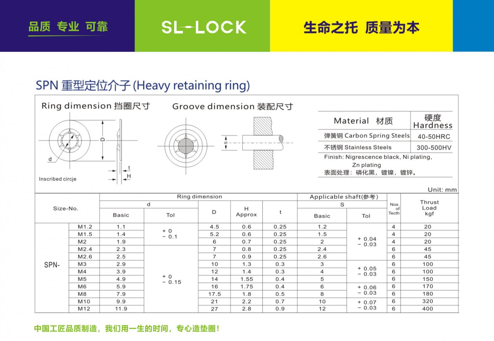 輕型軸用定位介子 執行標準:SPN 型號:M1.2-M12 材質:65MN.SUS304.316 表面處理:磷化黑色
